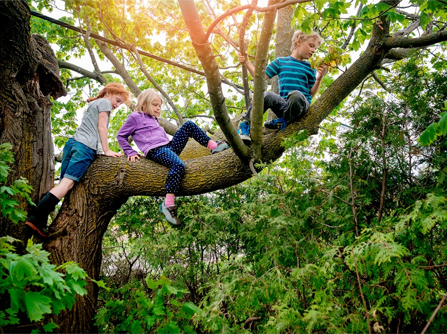 Skoven er verdens bedste legeplads. Man kan klatre højt op i træer, bygge huler eller lege alt fra gemmeleg til far-mor-og-børn.